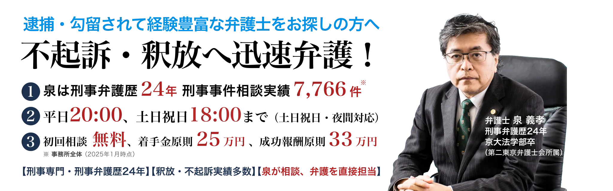 刑事弁護歴24年超の泉が直接対応